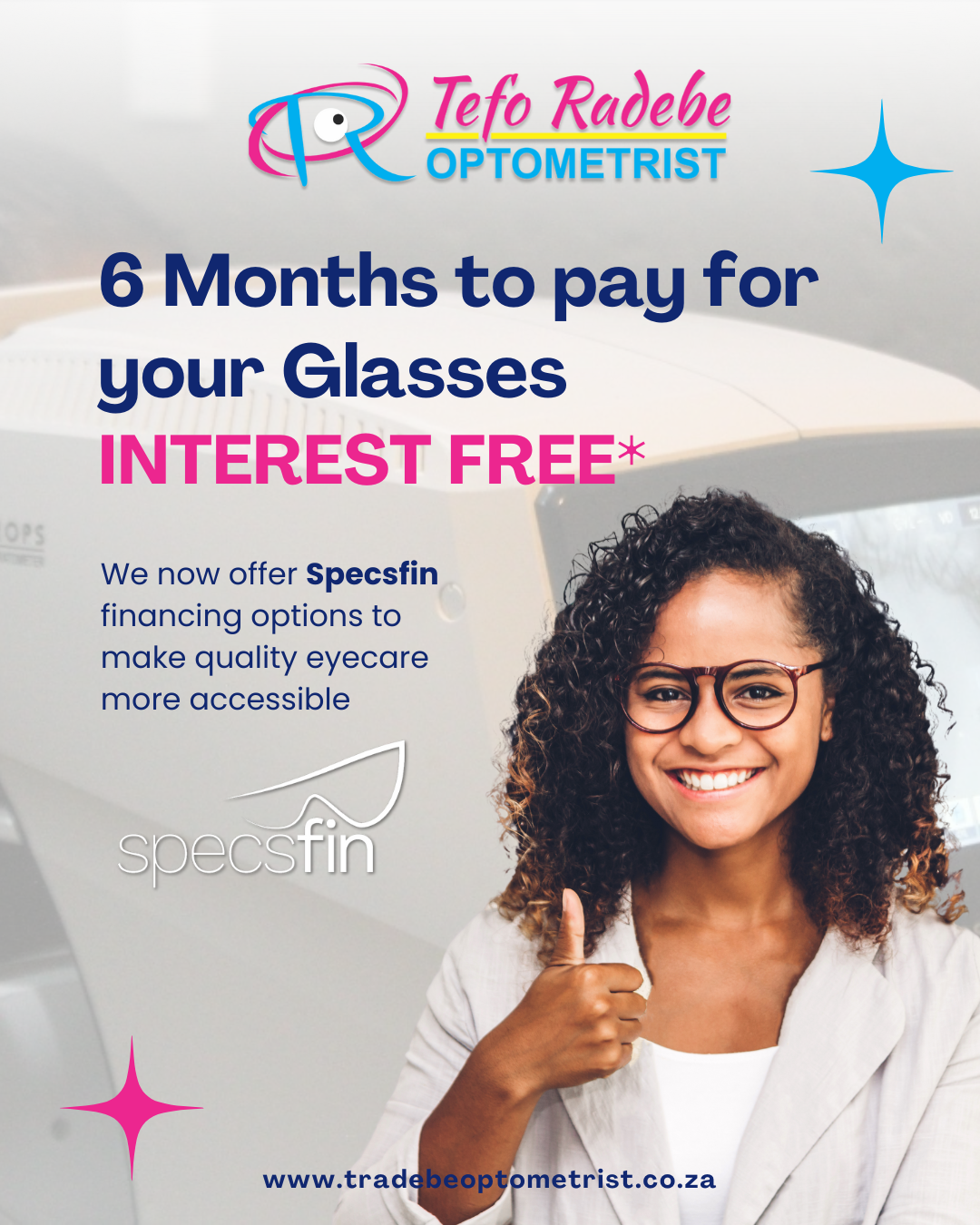 👓 Exciting News! We now offer Specsfin financing options to make quality eyecare more accessible. Enjoy flexible 6-month payment plans for your new glasses. Visit us today to learn more and see the world more clearly! #AffordableEyecare #Specsfin #ClearVision #Vosloorus #thokoza #katlehong #skycity #vereeniging
